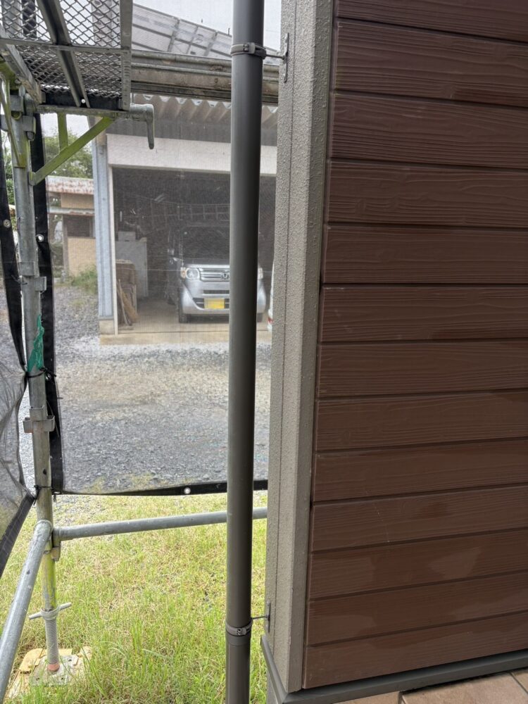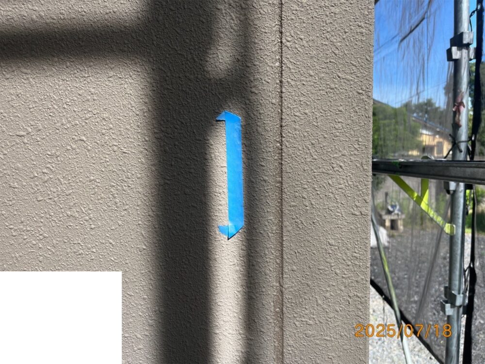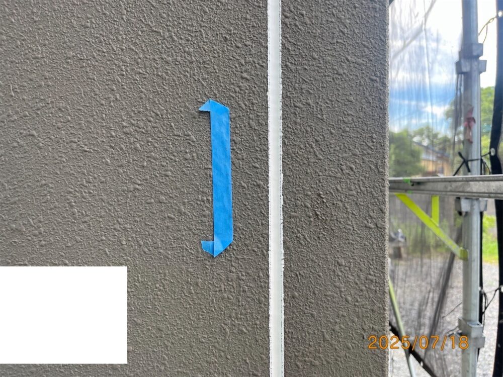 外壁は色あせや汚れ、チョーキングが見られました。 -