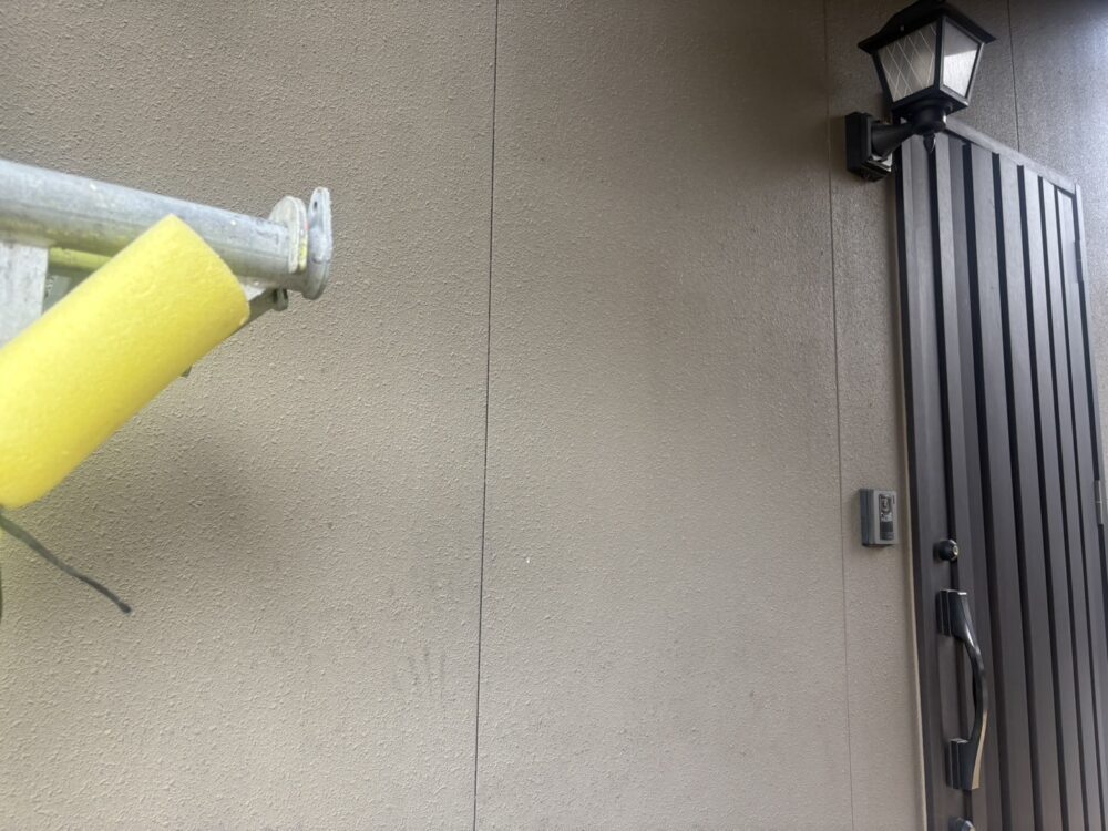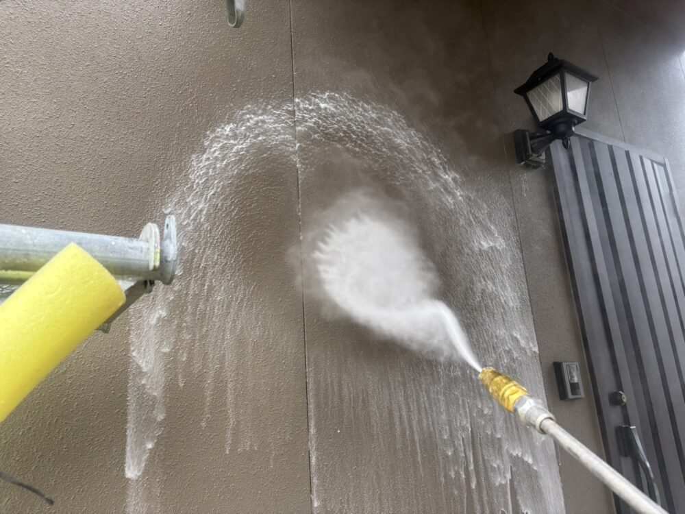 高圧洗浄で古い汚れやチョーキングをしっかり除去しました。 -