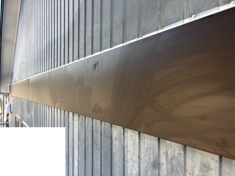 外壁との境目の帯部分が色あせ、少しくすんだ印象でした。 -